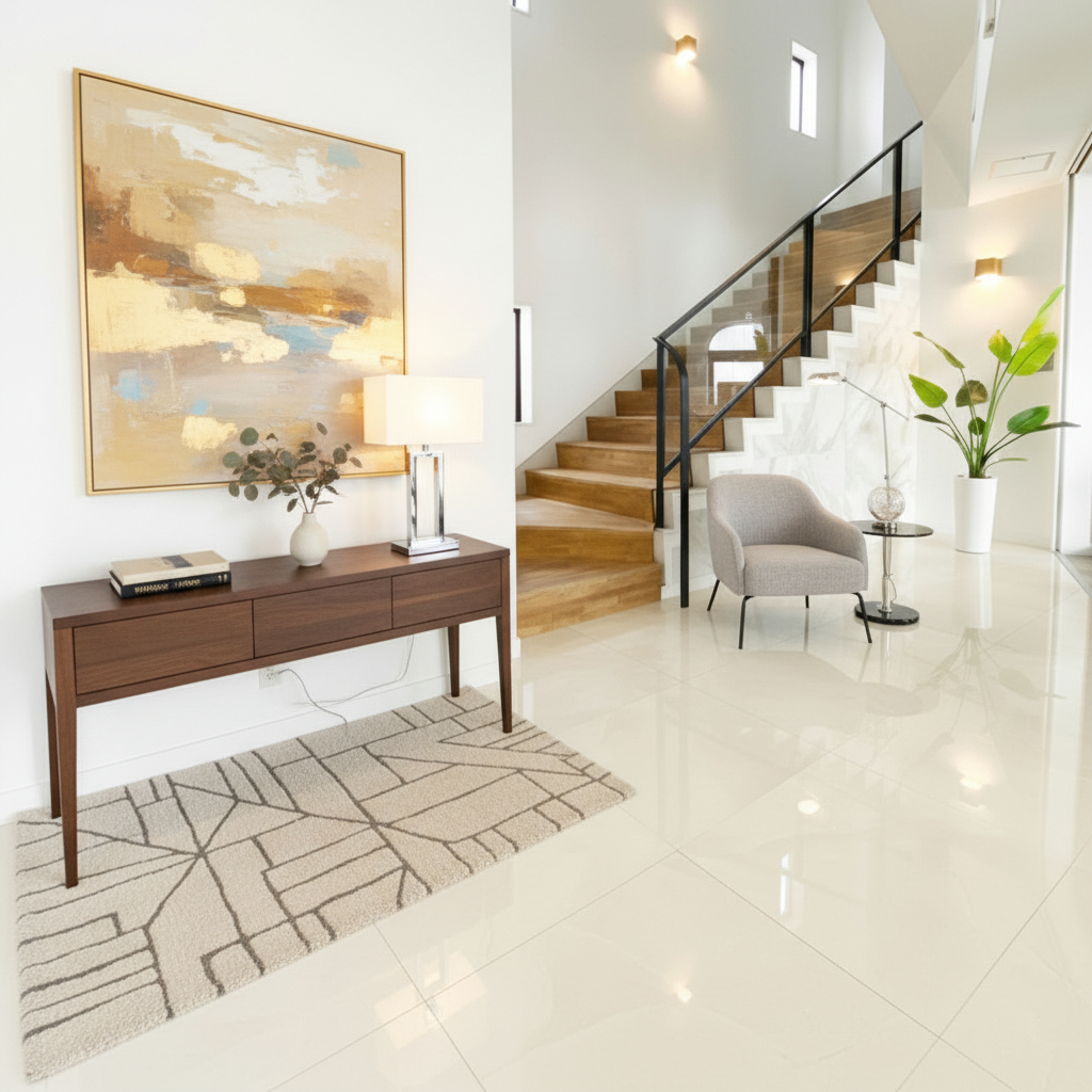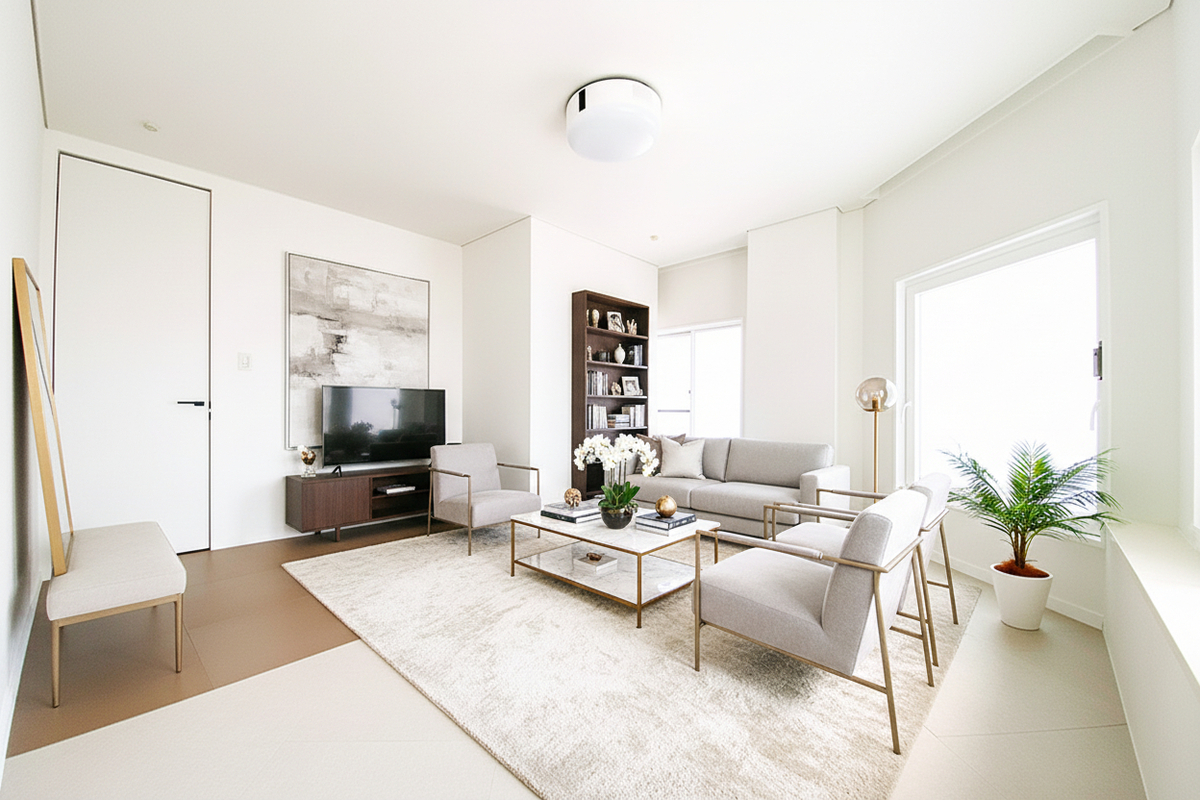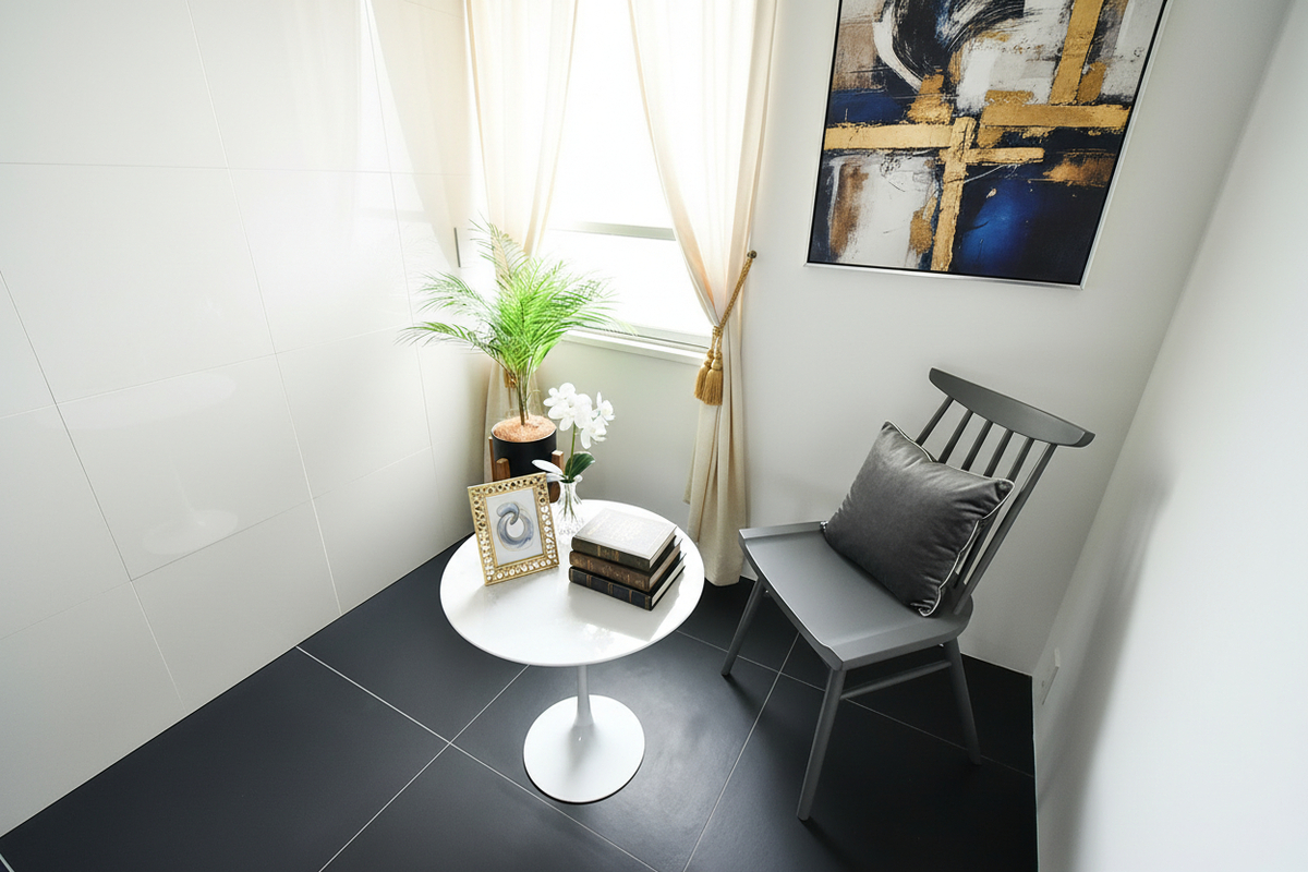 壁紙の質感、タイルの目地、自然光が差し込む角度。