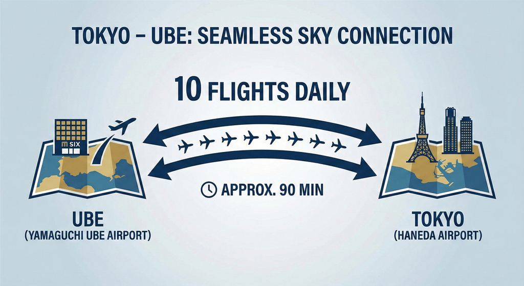 The flight time between Haneda and Yamaguchi Ube is about 90 minutes, and the number of daily flights is another benefit.